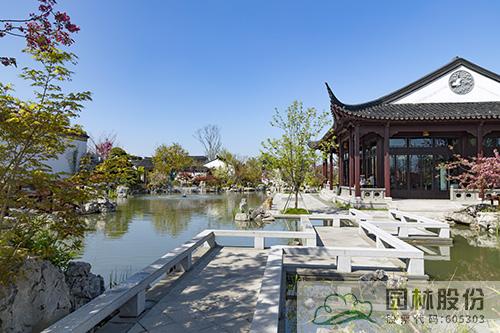 除了植物、園路等,建筑、曲橋、廊架、照壁等也在園區(qū)內(nèi)錯(cuò)落有致地分布,在有序劃分空間的同時(shí),營造出移步換景的園林景觀。