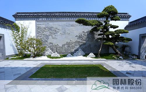 中華海棠園的五個(gè)島,面積大小不一,空間處理手法也因地制宜,各不相同。“從一號(hào)島‘海棠薈萃’的入口進(jìn)去,迎面一幅巨大的照壁,圖案是整個(gè)南海未來城的縮影,與造型羅漢松、竹子與水洗石等搭配的小景一起,營造出開敞大氣的迎賓空間,熱情歡迎四面八方的來客?!彪S著現(xiàn)場(chǎng)技術(shù)人員邊華鋒的講解,游走在園內(nèi),靈活多變的空間帶給人豐富的景觀體驗(yàn)。