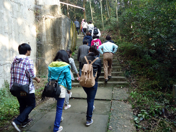 一路上,臺階時高時低,地勢時陡時緩,很快,就有人喊著走不動了,而有人則依然健步如飛……大隊人馬很快分散成了一條長長的隊伍,在蜿蜒的山路中向著高處奮勇攀登!