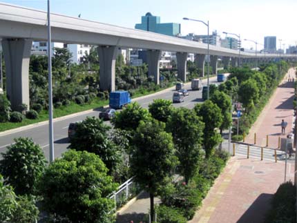 如今,開車行進(jìn)在這條道路上,干凈整潔的路面、開闊通透的視野、清新自然的景觀,給人帶來(lái)閑適、愜意的感覺?!耙匀藶楸荆鹬刈匀弧钡木G化理念,體現(xiàn)在景觀中的每個(gè)細(xì)節(jié);自然環(huán)境與城市環(huán)境的密切結(jié)合,使高架橋的道路通行功能與橋下中央綠化帶的生態(tài)功能有機(jī)融合。整條道路,不僅體顯出深圳這個(gè)濱海大都市獨(dú)有的景觀特色,更彰顯出這個(gè)城市的生機(jī)活力與熱情奔放。