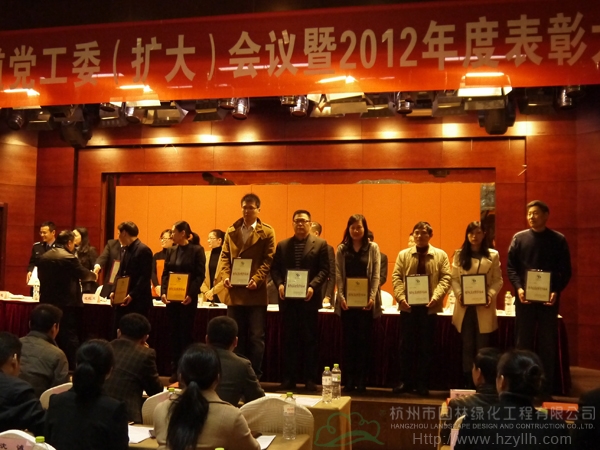會(huì)議重要議程之一,宣讀2012年經(jīng)濟(jì)工作表彰決定,其中,杭州園林榮獲優(yōu)秀建筑企業(yè)、國家高新技術(shù)企業(yè)、杭州市著名商標(biāo)、2011年度全市服務(wù)業(yè)先進(jìn)企業(yè)等稱號(hào),同時(shí),公司董事長吳光洪獲得浙江省中小企業(yè)優(yōu)秀企業(yè)家榮譽(yù)受到表彰。