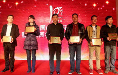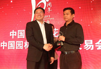 大會(huì)揭曉并頒發(fā)了“突出貢獻(xiàn)獎(jiǎng)”、“貢獻(xiàn)獎(jiǎng)”、“最佳合作伙伴獎(jiǎng)”、“2013年優(yōu)秀參展獎(jiǎng)”、“2013年產(chǎn)品金獎(jiǎng)”等多個(gè)獎(jiǎng)項(xiàng),以此表彰一批多年來(lái)為中國(guó)(蕭山)花木節(jié)的成功舉辦做出積極貢獻(xiàn)的個(gè)人和單位。其中,杭州市園林綠化工程有限公司榮獲“最佳合作伙伴獎(jiǎng)”、“2013年優(yōu)秀參展獎(jiǎng)”,參展的產(chǎn)品“紅寶石”紫薇和“火煉金丹”桂花榮獲“2013年優(yōu)秀產(chǎn)品獎(jiǎng)”,總經(jīng)理張炎良上臺(tái)領(lǐng)取了獎(jiǎng)牌。