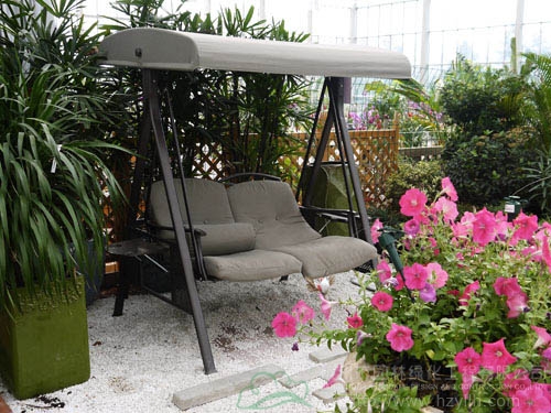 蕩秋千,是兒時(shí)記憶中最快樂(lè)的玩樂(lè)方式之一,在那一蕩一蕩的秋千中,曾留下了多少歡聲笑語(yǔ)和快樂(lè)的童年時(shí)光。穿過(guò)為園藝愛(ài)好者設(shè)計(jì)的庭院景觀,眼前的這處小景,最引人注目的就是這架做工精美又不失穩(wěn)重的布藝秋千,輕易地讓人聯(lián)想到一家人在此玩樂(lè)的溫馨畫面。這處現(xiàn)代庭院風(fēng)格的小景,線條簡(jiǎn)約,顏色鮮明,鋪設(shè)木平臺(tái)以烘托溫馨的生活氣息,鐵藝的室外桌椅以及精致的裝飾用品,無(wú)不顯示出對(duì)美好生活的享受與追求。這種類型的小景不受庭院風(fēng)格限制,庭院的主人可以根據(jù)自己的愛(ài)好,營(yíng)造出獨(dú)屬于自家的景觀特色。