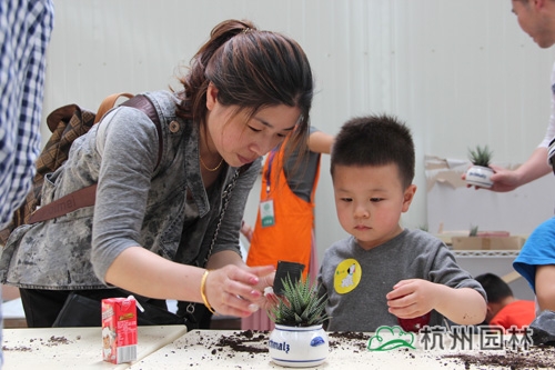 參觀完室內(nèi)賣場(chǎng),所有小朋友和家長(zhǎng)們來(lái)到了親子操作間,這里,有為他們準(zhǔn)備好的多肉植物、盆器、營(yíng)養(yǎng)土、裝飾品等??吹竭@些漂亮可愛(ài)的物品,大家都表現(xiàn)出了極大的興趣,在園藝師的帶領(lǐng)下,迫不及待地開(kāi)始了組盆活動(dòng)。快樂(lè)的時(shí)光過(guò)得真快,經(jīng)過(guò)小朋友們和父母通力合作,拼出了一件件漂亮的小盆栽,心滿意足地帶回家去。