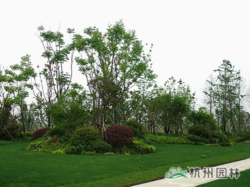 該酒店的景觀工程(一標(biāo)段)由杭州市園林綠化股份有限公司承建,工程施工面積10萬余平方,施工內(nèi)容包括綠化種植、硬質(zhì)鋪裝、園路施工、景觀小品工程、樁基工程、給排水系統(tǒng)工程及景觀照明系統(tǒng)等。作為一個綜合性園林工程,該工程施工內(nèi)容多,工程量大,工藝相對復(fù)雜,對施工技術(shù)的要求較高。