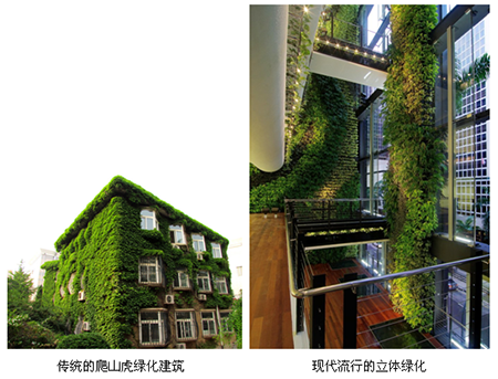 立體綠化的主要形式為立體綠化墻,也稱植物墻或綠墻,是近年來興起于法國的一項用于墻面垂直綠化的新技術(shù)。過去用于垂直綠化的植物只有大家熟悉的爬山虎、紫藤等,但是這些植物缺乏常綠、觀花、觀果的觀賞效應(yīng),而且還要引導(dǎo)植物攀爬墻面,搭棚架、立柱,幾年以后才成氣候,比較麻煩。而如今的立體綠化墻是一個小型生態(tài)系統(tǒng),它可以根據(jù)客戶需要,結(jié)合氣候、溫度、濕度、色彩等綜合條件,選配四季長綠或色彩豐富的植物,隨時在人們想要的地方構(gòu)建出一個貼近自然又超脫自然的生活環(huán)境。當在屋頂、墻面等覆蓋了適當?shù)闹脖缓?,大量的熱氣和紫外線都會被植物抵擋,這層植物墻能夠使其表層溫度降低15°C左右,夏天基本可以不需要依賴空調(diào)。而且植物墻能消除墻面對陽光的反射,使走在大街上的人們不受陽光干擾,感受到?jīng)鏊耐瑫r也避免眼睛被強光照射。到了冬天,植物墻又具有保溫的功能,這種方式非常低碳節(jié)能,并且更健康。