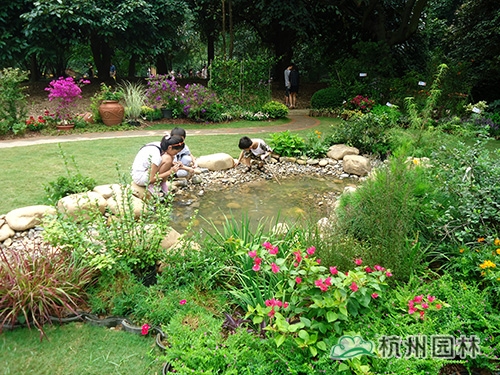 走進(jìn)園內(nèi),蜿蜒的溪流和溪岸邊的景致野趣妙生,一下子撲入視野,清澈的溪水、光滑的卵石、可愛的小蝌蚪,與岸邊的銀邊菖蒲、水生鳶尾、花葉美人蕉、花葉蘆竹等水生植物一起,營造出生態(tài)、自然的河流景觀。“這條溪流,其實(shí)是我們杭州的母親河——錢塘江的縮影,通過這條溪流的營造,我們想呼吁更多的人保護(hù)生態(tài)、愛護(hù)環(huán)境,讓我們的母親河永遠(yuǎn)干凈、清澈。”郭昌如簡短的話語中,透露出的是一名園林人渴望更多人關(guān)注水生態(tài)環(huán)境的殷殷期盼。