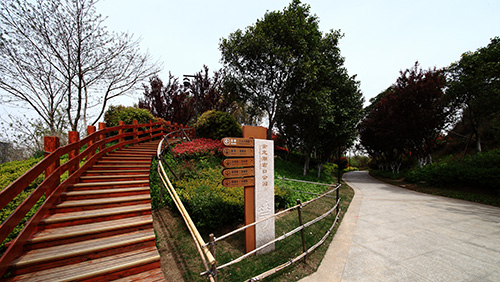 為恢復(fù)植被,修復(fù)裸露的山體,工程中應(yīng)用了大量的植物,其中,榔榆、喜樹、樸樹、三角楓、黑松、香樟、銀杏、無患子、女貞、欒樹、七葉樹、五角楓、楓香、雪松、烏桕、廣玉蘭、黃連木、黃金槐、馬褂木等喬木50余品種,2.3萬余株,鄉(xiāng)土樹種占88%;垂絲海棠、映山紅、櫻花、紫薇、金絲繡球、含笑、紫葉李、茶梅、紅梅、紅櫨等花灌木100余品種,2.5萬余株;紅葉石楠、金森女貞、扶芳藤、南天竹、灑金珊瑚、水果蘭、六道木、檉柳、衛(wèi)矛、無刺枸骨、毛鵑、連翹、金鐘、迎春、紅花檵木等綠籬40余品種,面積約4.1萬平方米;各種宿根、球根、時令花卉和水生植物,如薰衣草、金雞菊、郁金香、鳶尾、牡丹、金絲桃、珍珠梅、繡線菊、美人蕉、荷蘭菊、蒲公英、亞菊、玉龍草、八仙花、瓊花、月季、薔薇等80余品種,面積約2.8萬平方米;鋪設(shè)草坪及地被麥冬等面積約8.7萬平方米。豐富的植物應(yīng)用,使得原本裸露的山坡披上了綠色的盛裝,公園內(nèi),春有百花爭艷,夏有綠蔭匝地,秋有金色滿園,即使到了冬天,也仍能看到滿山的綠色與生機。