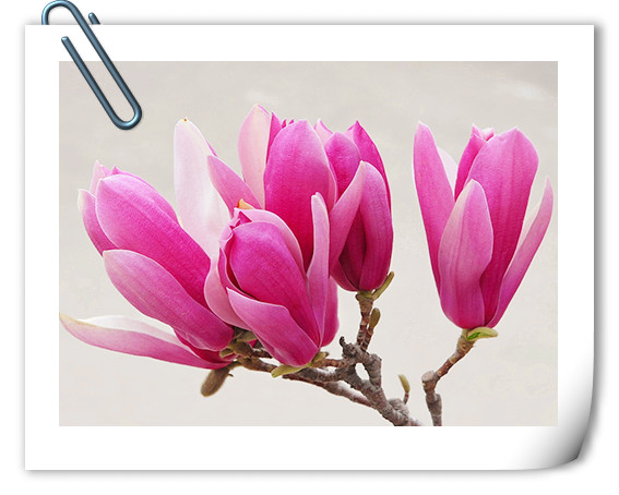 不同顏色的玉蘭中,開得最早的,當(dāng)數(shù)白玉蘭,那純正的白色花朵,纖塵不染,清雅秀麗中有著瓷器的溫潤質(zhì)感,仿佛一件件潔白的工藝品,很想將它捧在手心,慢慢品味它的精致與美麗。紫色的玉蘭花,則有著淡淡的華貴氣質(zhì),那含苞欲放的花朵,酷似一枝枝飽蘸紫色墨水的毛筆,揮灑自如間,描繪出獨(dú)屬于春天的明艷風(fēng)情。黃色的玉蘭花,呈現(xiàn)出淡淡的鵝黃色,柔柔的,嫩嫩的,帶著清新寧靜的氣息,有著超凡脫俗的美。不同顏色的玉蘭花有著不同的美麗,但每一種都那么迷人,充滿靈動(dòng)的氣息。