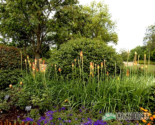 火炬花葉長(zhǎng)至二三十厘米即開始下垂,但其花序長(zhǎng)可達(dá)80-100cm,在花境中常用作焦點(diǎn)或背景材料。