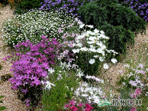 石竹、瞿麥在巖石園的應(yīng)用特寫。
