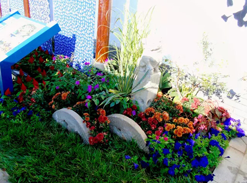 考慮到銀川的干燥氣候,垂直綠化墻植物的保濕成為難題?!罢憬瓐@”垂直綠化墻以無紡布為墻體材料,使用保濕性強(qiáng)的基質(zhì),優(yōu)選植物種類,同時(shí)搭配滴灌系統(tǒng),保證了綠化墻鮮花擁簇的景象。展園內(nèi)的垂直綠化墻設(shè)計(jì)簡(jiǎn)潔、曲線優(yōu)美,與以錢塘江文化為主題的背景墻相互映襯,共同展現(xiàn)了新時(shí)期浙江園林景觀的不斷發(fā)展與創(chuàng)新。