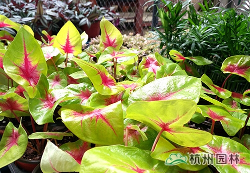 花葉芋:紅與黃交織的葉面色彩絢麗奪目,充滿了生機(jī)和活力,讓人的心情瞬間明亮起來。
