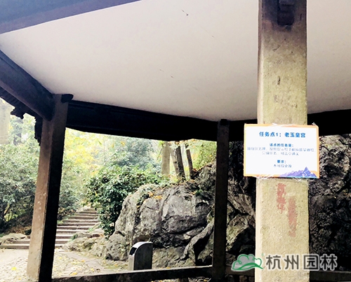 第二個任務點在紫氣東來石碑。大家在紫氣東來石碑前的平臺區(qū)域用“杭州園林”的元素進行合影、點贊,即可蓋章過關。紫氣東來石碑是玉皇山的標志性位置,大家在這里合影留念,成為“杭園小天使”,“為杭園打call”,玩的不亦樂乎。