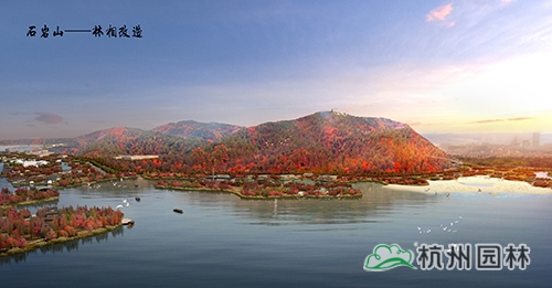 越王城山、老虎洞山、石巖山和柴嶺山為湘湖兩岸群山的四大主峰,依托層巒疊嶂之山勢(shì),進(jìn)行山林林相改造,營(yíng)造錦繡湘湖之湖山景觀。