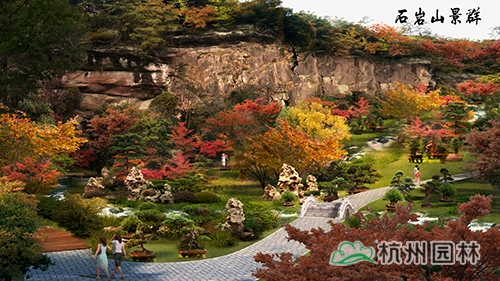 結(jié)合石巖山上有先照寺、一覽亭遺址,補(bǔ)充秋色葉樹(shù)種,突出石巖望秋的意境,結(jié)合鵝鼻峰八仙采藥的傳說(shuō)布置牡丹草藥園,展現(xiàn)湘湖養(yǎng)生文化。