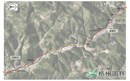 本次設(shè)計(jì)范圍為Y503鄉(xiāng)道(毛家村--裊溪村段)沿線(xiàn)的景觀改造提升,長(zhǎng)度約為3公里。改造提升內(nèi)容主要為道路沿線(xiàn)兩側(cè)的建筑立面整治、荒地覆綠、花壇整治、護(hù)坡?lián)鯄κ崂砀?、新增溪邊平臺(tái)、老橋修復(fù)、廣場(chǎng)整治等。