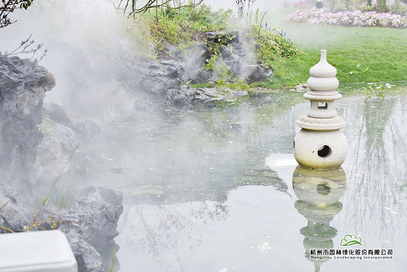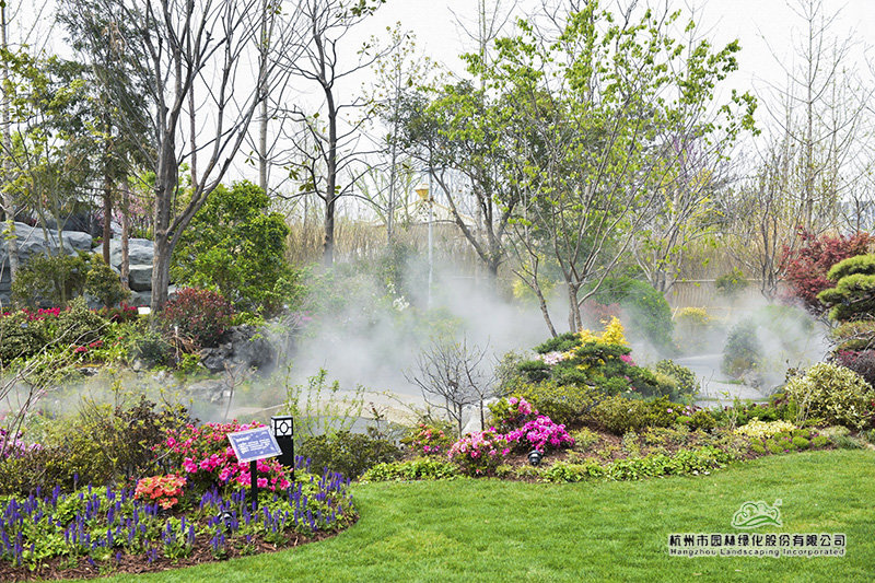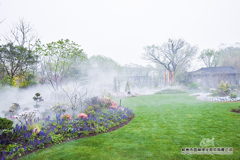 “延慶空氣干燥,而浙江園內(nèi)的植物,基本來自氣候溫潤(rùn)的南方,因此,如何有效保水和增加空氣濕度,以此來提高植物的成活率和保證后期生長(zhǎng),是我們施工時(shí)必須要考慮的問題。”吳小成說,“所以,園內(nèi)我們一共做了四套系統(tǒng),大樹根部的滴灌系統(tǒng)和樹上的噴灑系統(tǒng),大草坪的澆灌系統(tǒng),以及針對(duì)全園的霧森系統(tǒng)。”