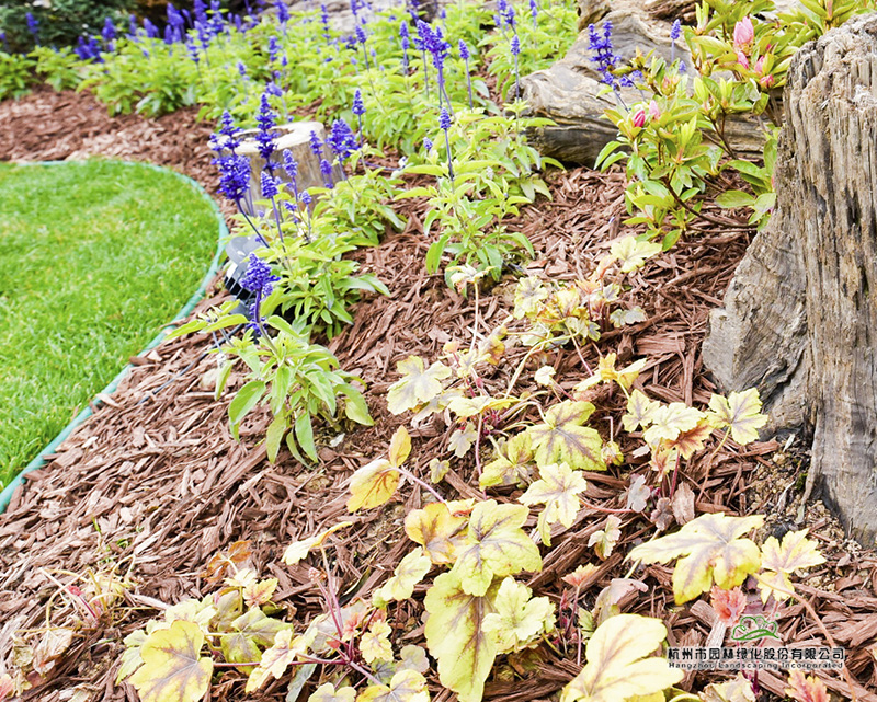 除了土壤改良,裸露地面還鋪了一層棕色覆蓋物,這是一種用樹皮深加工成的新型產(chǎn)品,里面加入了有利于植物生長(zhǎng)的營(yíng)養(yǎng)成分。不但具有美觀的作用,而且可以有效防止水分蒸發(fā)和水土流失,冬天則具有保溫作用,防止植物根系凍傷。
