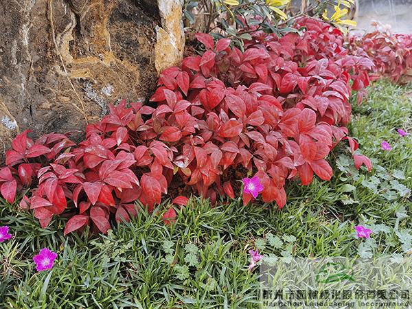 項目中應用了許多景石,為了避免出現(xiàn)視覺的疲憊,每塊景石的形態(tài)、大小、植物配置都各有千秋。在一些入口和節(jié)點處,通過景石與色葉植物、開花植物、球類植物的有機搭配,營造出一個個意趣盎然的花境景觀。