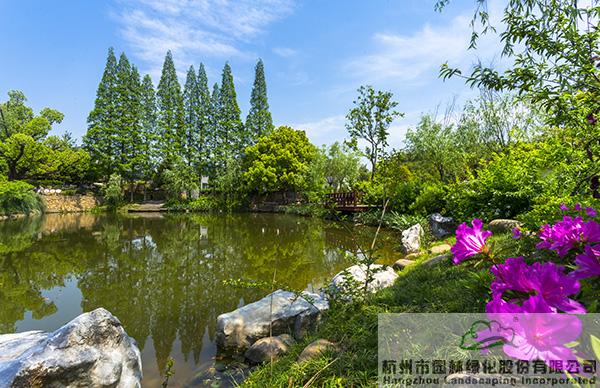綠樹紅花,流水淙淙,