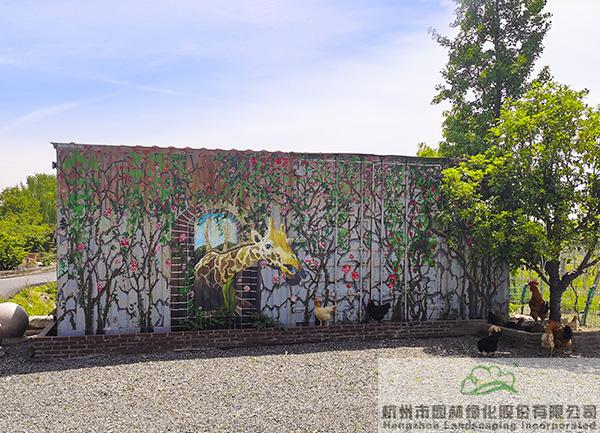 風(fēng)景不僅僅停留在墻上,還引景入院。通過(guò)對(duì)庭院內(nèi)部景觀改造提升,清理院子中散落的物件,在門前屋后布置小景,放置農(nóng)村不用的木桶、水缸,或瓶瓶罐罐的陶瓷制品,種上睡蓮、荷花、銅錢草、吊蘭、絡(luò)石、多肉等植物,形成濃厚的鄉(xiāng)村風(fēng)情。