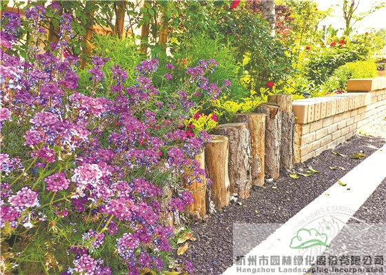 美女櫻、佛甲草與小木樁,充滿自然野趣。