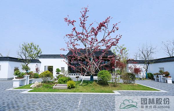 盆景園內(nèi),一棵棵造型別致的盆景,是海棠另一種形態(tài)的展現(xiàn)。院子中央,高大的‘豐盛海棠’正迎來盛花期,深粉色的花朵密密匝匝布滿枝頭,成為院中最引人矚目的風(fēng)景,與院子里的五棵柿子樹搭配種植,組合成“五世同堂”的美好寓意,寓示著日子紅紅火火、闔家歡樂吉祥。在主建筑旁的天井處,采用盆景化的造園手法,運用南天竹、黑松、石子等元素營造的植物小景,自成一方小天地,與整個盆景園形成“園中園”的關(guān)系,展現(xiàn)出造園者的奇妙心思。