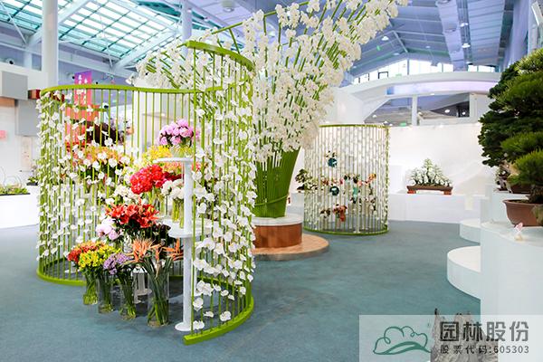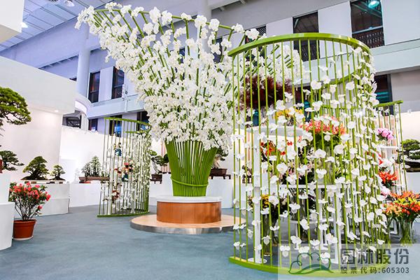 走進(jìn)館內(nèi),各種浙江特色新優(yōu)園林園藝植物產(chǎn)品、花藝作品、盆景作品等,讓人忍不住駐足停留。最引人注目的,則是以一朵朵白色的蝴蝶蘭花朵與仿竹構(gòu)筑物營造的立體景觀,結(jié)合蒼翠欲滴的竹林背景和浙派山水盆景,營造出綠意盎然、生機(jī)無限的風(fēng)景畫卷。寓意浙江是“綠水青山就是金山銀山”理論的發(fā)源地,表現(xiàn)浙江始終踐行“綠水青山就是金山銀山”的理念、大力推進(jìn)生態(tài)文明建設(shè)取得的巨大成就。