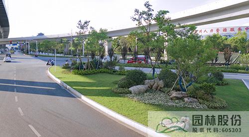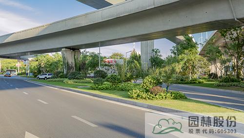 項(xiàng)目綠化施工主要包括道路分車帶、道路兩側(cè)帶狀綠地、節(jié)點(diǎn)綠地、高架橋垂直綠化等區(qū)塊。每個(gè)區(qū)塊根據(jù)其功能與特色,通過(guò)不同植物配置,營(yíng)造豐富景觀。