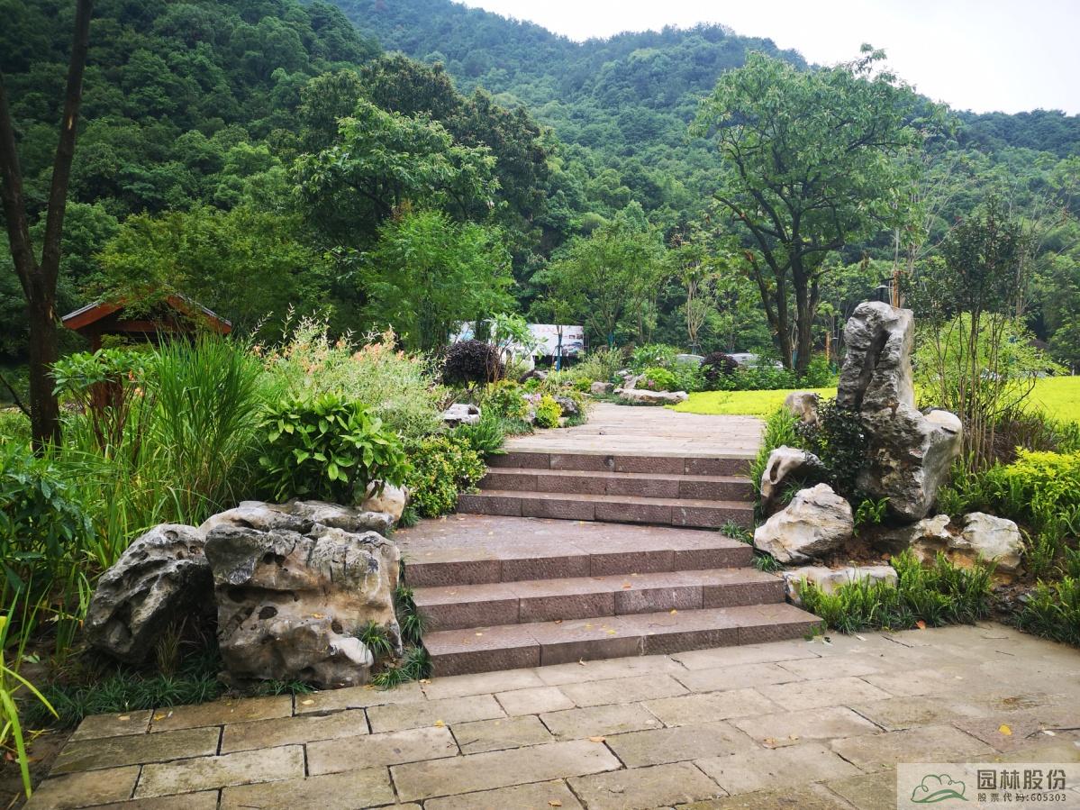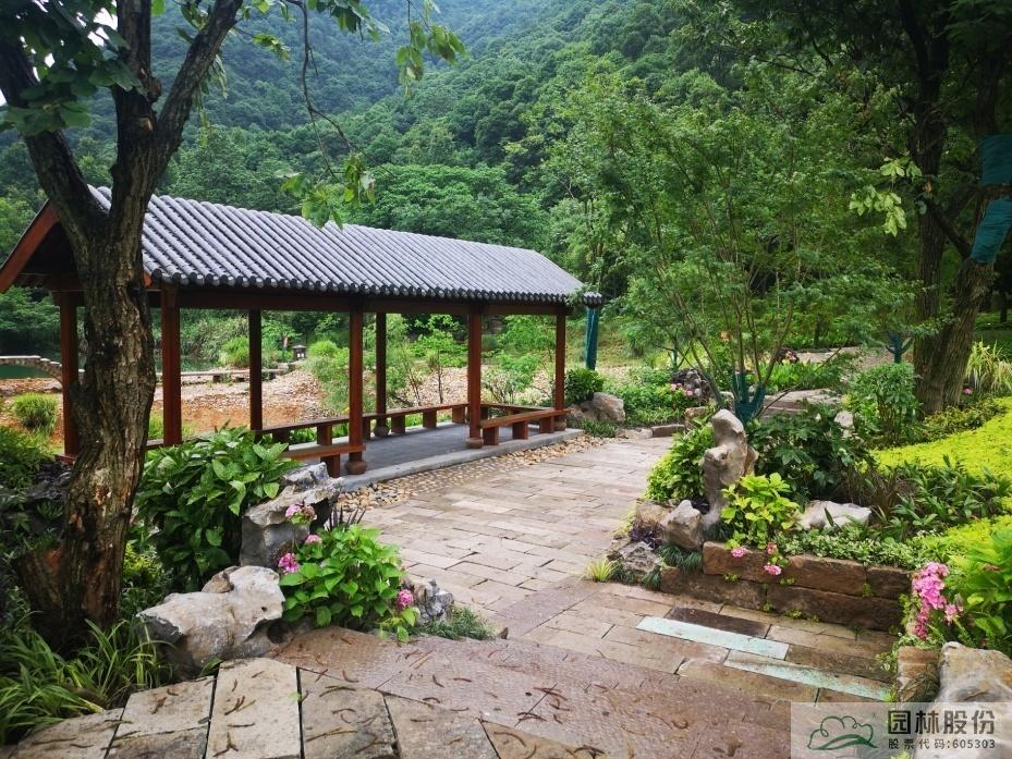 植被梳理:整理入口處現(xiàn)狀竹林,增加草花豐富景觀層次;在入口服務(wù)用房周圍設(shè)置花境庭院,提供休閑茶座供人休憩;