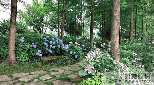分割成濱水、林下等多種空間,與繡球形成不同互動;