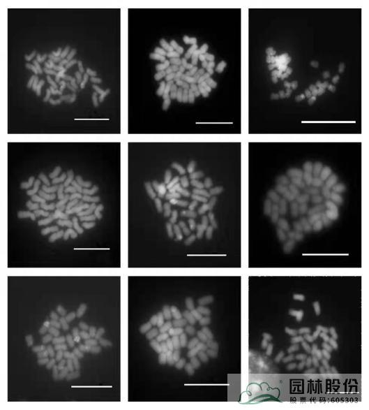 2019年在上海市科委重大攻關(guān)項目《八仙花高質(zhì)量苗木標(biāo)準(zhǔn)化繁育與栽培技術(shù)》(編號:19DZ1203503)的資助下,杭州市園林綠化股份有限公司浙江園林資源與環(huán)境技術(shù)研究院開展了江南地區(qū)繡球新品種的專項培育,項目通過對國內(nèi)外引進(jìn)的92種繡球種和品種進(jìn)行綜合評價,再根據(jù)染色體分析,篩選出21個具有觀賞特色或新枝開花或高抗性的資源作為親本,包括14個大葉繡球品種、3個喬木繡球品種、3個圓錐繡球品種、中國繡球原種和蠟蓮繡球原種。