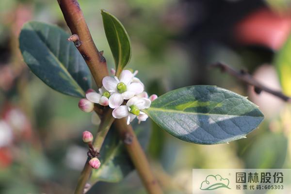 其中,彩葉冬青更是其中的佼佼者。除了果實(shí)可供觀賞外,它們還擁有黃色葉、藍(lán)綠色葉和銀邊葉等彩色葉片。葉形變異也是相當(dāng)豐富,具四角狀,橢圓形,倒卵形等多種形狀;有些品種具有刺狀葉片,而有些則是光滑的葉片;有些品種葉緣還具有波浪狀的起伏。四季景觀分明,在春季,它們的莖腋間會(huì)簇生出一朵朵清新可愛的小花;而在當(dāng)年生的枝條上,則會(huì)抽出亮麗的嫩葉。到了秋季,隨著氣溫的驟降,葉色會(huì)變得更加地明艷;冬季的時(shí)候,在雌性的植株枝條上,則會(huì)掛滿累累的果實(shí)。這些不同的形態(tài)和色彩變化,使得彩葉冬青在不同的時(shí)間和空間中呈現(xiàn)出不同的姿態(tài)、色彩與意境,從而提升了冬青品種的觀賞價(jià)值,成為園林景觀中重要的觀葉植物。