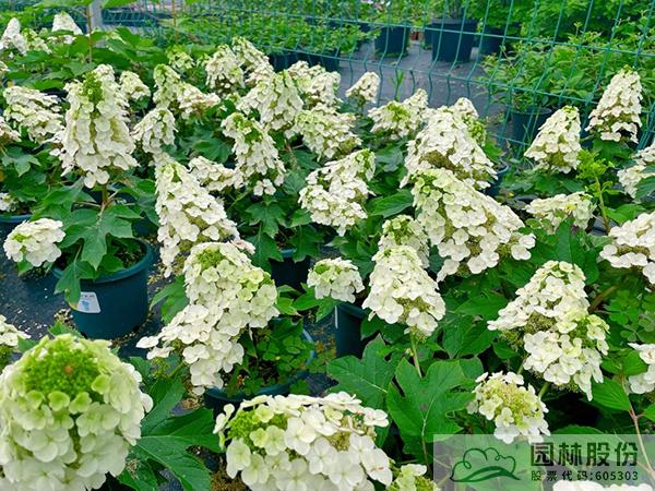虎耳草科繡球?qū)?,落葉灌木;成株高度100-150 cm,成株冠幅 80-150 cm;葉片掌狀,長寬接近,3~7 裂;花期6-10 月,圓錐花序,花朵密集型,盛花時(shí)碩大醒目的花序可達(dá) 30 cm 以上,初期翠綠色,中后期花色逐漸轉(zhuǎn)白,秋季晝夜溫差大會(huì)使其逐漸暈染上粉紅色;老枝開花,成年植株花期觀賞效果極佳,花后修剪,平時(shí)只需修剪重疊枝、病殘枝即可,以免影響第二年開花;耐熱耐寒,喜溫暖和偏蔭蔽的環(huán)境,微酸性土壤;株型高大,枝條挺拔,樹冠寬闊豐滿,花球碩大;櫟樹一樣的掌狀葉片,到秋季會(huì)轉(zhuǎn)變?yōu)樯罴t色,紅葉期一般從每年的深秋至次年的5月,是一種既可觀花、又可賞葉的彩葉灌木。