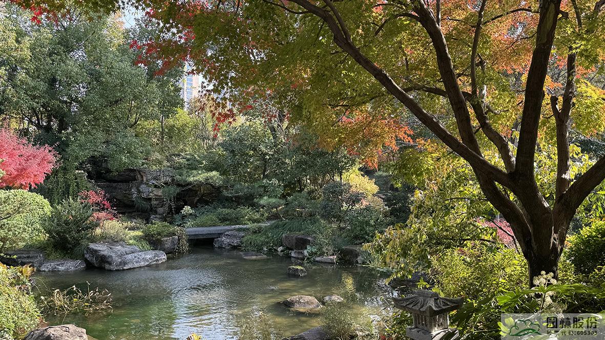 “無楓不成景”。無論是中式庭院、日式庭院,不管在水邊、路邊,紅楓五彩繽紛的葉色,如大自然的調(diào)色盤,渲染出畫境園的初冬。