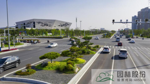 打破原有道路植物種植形式單一,品種較少,冬季落葉草本花卉較多,與道路西側(cè)景觀難以呼應(yīng)的不足,改造后的中央隔離帶,在道路兩端島頭位置,用國(guó)產(chǎn)造型黑松替代性價(jià)比不高的日本造型黑松,以造型黑松樁點(diǎn)綴,中間段則采用常綠植物和自然式花境,以大小組團(tuán)形式進(jìn)行植物造景,在豐富植物品種和種植手法的同時(shí),滿足了冬季景觀效果,并能與道路西側(cè)景觀有機(jī)融合。