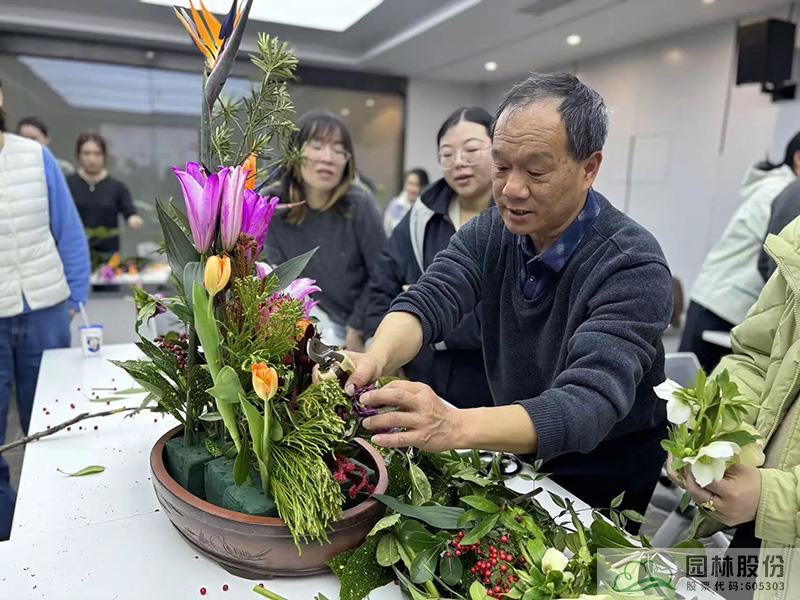 隨后,一場別開生面的插花藝術(shù)課堂拉開帷幕。江志清大師以生動(dòng)的語言,從插花藝術(shù)的基礎(chǔ)理論、色彩搭配技巧到花材處理方法等,娓娓道來?,F(xiàn)場的女性員工們認(rèn)真聆聽,不時(shí)記錄要點(diǎn),沉浸在花藝的美學(xué)世界里。理論學(xué)習(xí)之后,大家以六人為一組,在江志清大師的指導(dǎo)下,動(dòng)手進(jìn)行插花創(chuàng)作。剪刀輕剪,花枝舒展,巧手翻飛間,一朵朵鮮花被賦予了新的生命。大家自由發(fā)揮創(chuàng)意,將普通的花材變成一件件獨(dú)具匠心的花藝作品。活動(dòng)現(xiàn)場花香四溢,歡聲笑語不斷,每一位女性都在創(chuàng)作中找到了屬于自己的那份寧靜與自信,更在團(tuán)隊(duì)協(xié)作中增進(jìn)了彼此的溝通與默契。