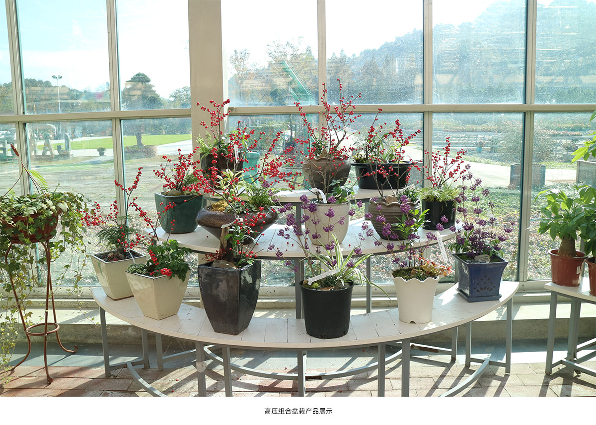 以容器育苗技術(shù)為基礎(chǔ),結(jié)合株型控制技術(shù)、高空壓條技術(shù)和花期調(diào)控技術(shù),對上百種園林植物進行深度開發(fā),實現(xiàn)中大型植物小型化和多季開花的目的,有效提高了植物產(chǎn)品的附加值。
